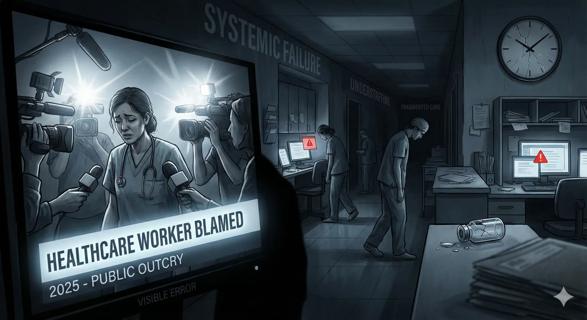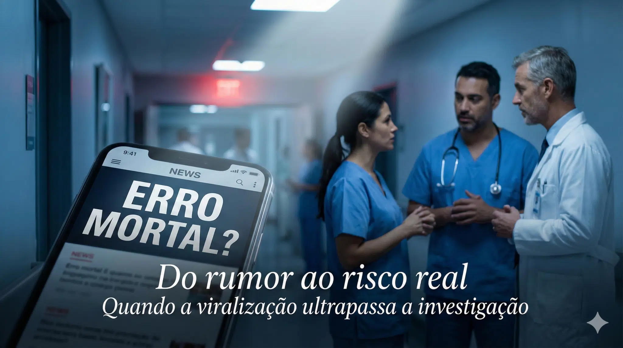 Um vídeo começa com música tensa. Letras garrafais na tela: “ERRO MÉDICO MORTAL”.Cortes rápidos. Um corredor de hospital. Um familiar chorando.Em poucas horas, milhares de